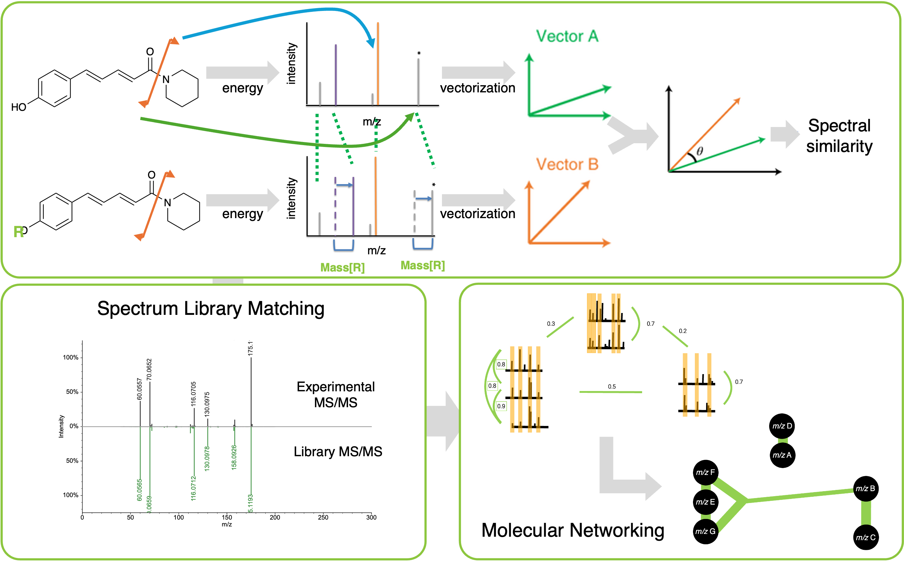 대규모 천연물 대사체 동정을 위한 open access spectral library 구축 프로젝트로 propagated nearest neighbor suspect spectral matching을 활용하여 untargeted metabolomics에서 화합물 동정의 정확도와 커버리지를 획기적으로 향상시켰습니다. (Bittremieux et al., 2023)