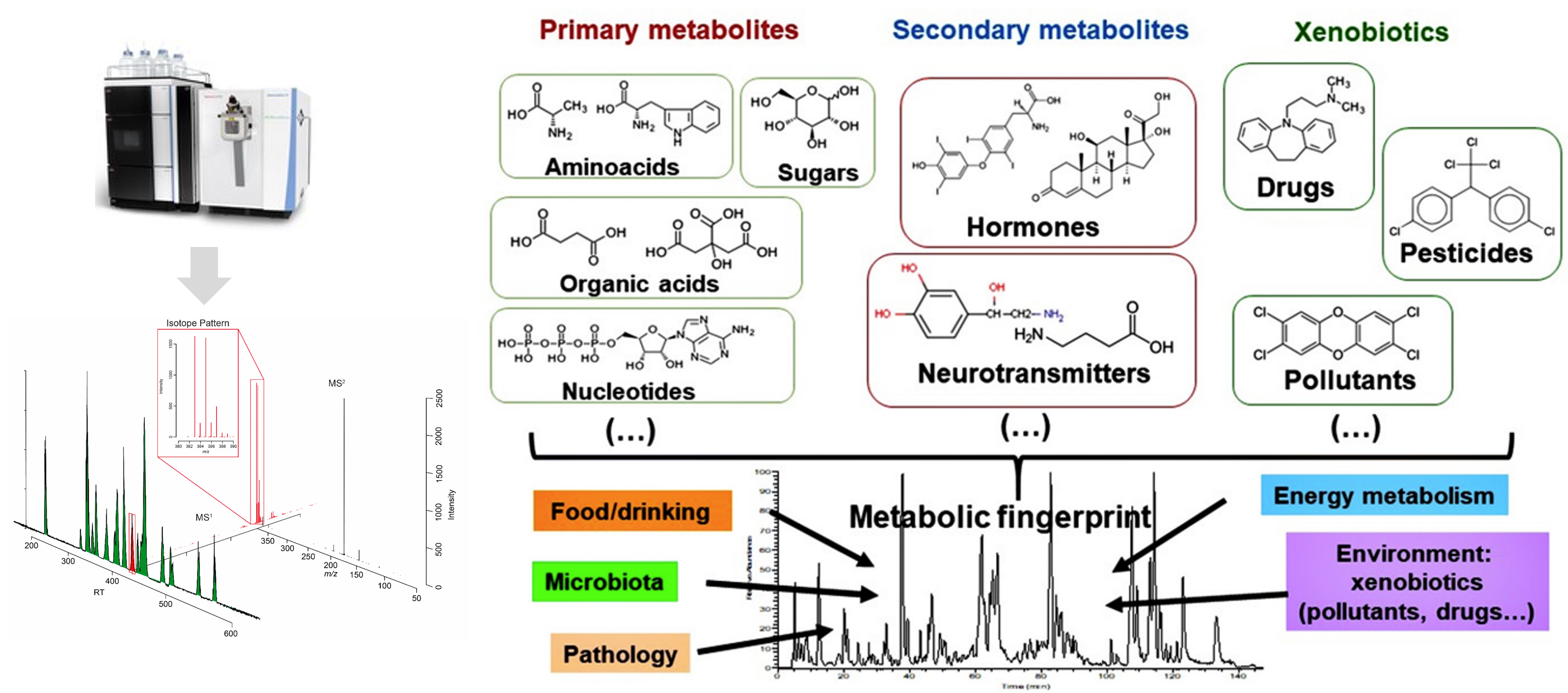 Figure 1: 대사체학 연구 개요 - 1차/2차 대사산물 및 이종생물질의 포괄적 분석
