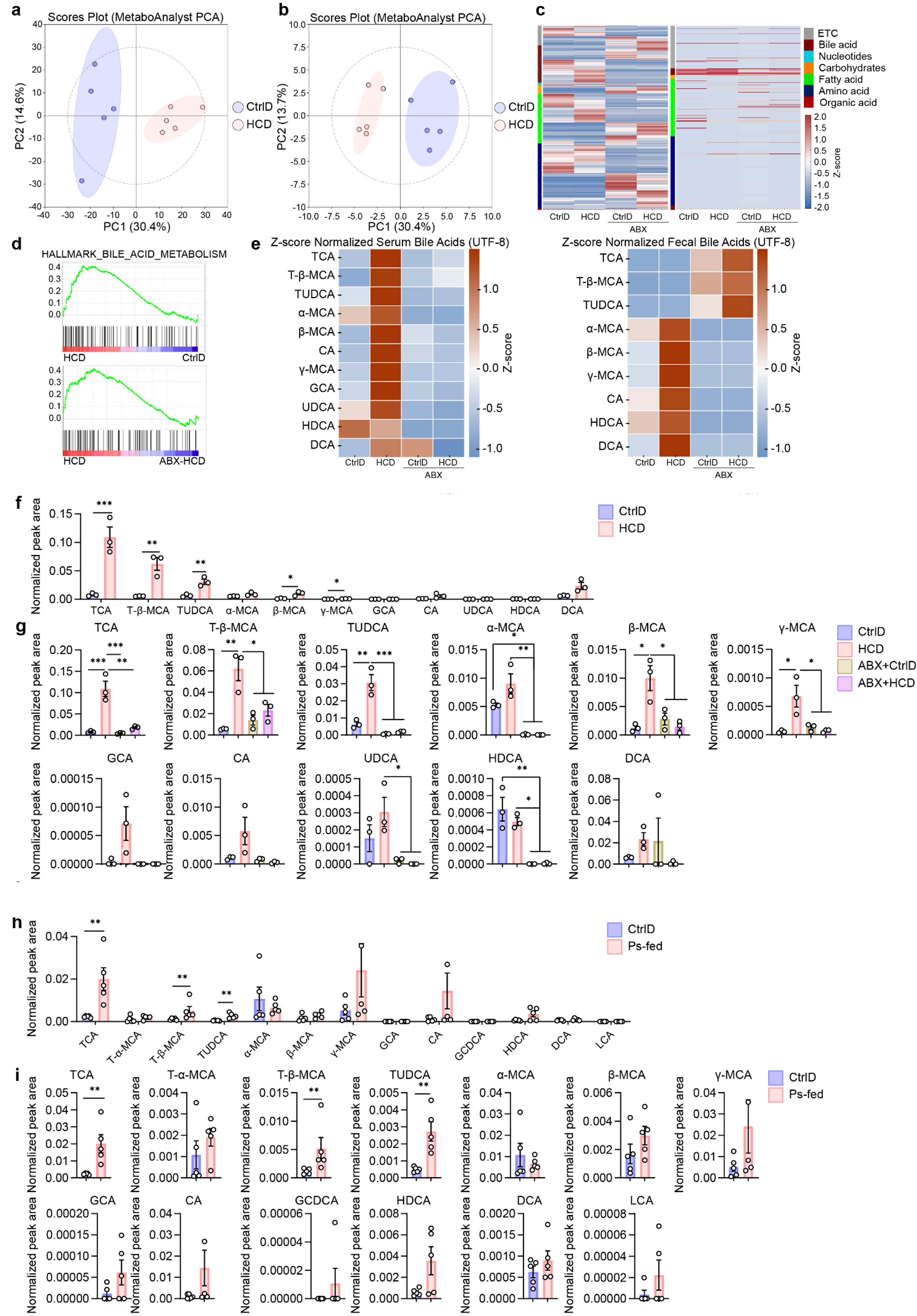 - 타우린 결합 담즙산(TCA)의 증가: 이 과정에서 P. sartorii는 혈중 taurocholic acid (TCA)를 포함한 taurine-conjugated bile acids의 수준을 유의하게 높이는 것으로 나타났으며(Fig e, f, g, h, i), 이는 병리적 변화의 주요 매개체로 작용함을 시사합니다.